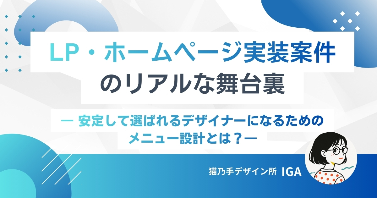 人気記事Popular Post 【実例で解説】生成AI×ICT業務|私が仕事を爆速化した超実践テクニック8選+Slack自動化 81 views 初心者Webデザイナーの集客ロードマップ 70 views 公務員が副業するために、親族で「法人化」して隠すって実際ありなの? 42 views 【完全版】デザインスクール費用が今年かかったなら、今年中に開業した方が良い理由10選 35 views 個人事業主のための「開業届」の出し方 15 views LP・ホームページ実装案件のリアルな舞台裏〜「サーバーって何?」「ドメインってどうするの?」から始まるWeb制作〜 11 views WEBデザイナーが持つべき「フロントエンド商品」と「バックエンド商品」 10 views 【保存版】Figma・STUDIO・ペライチを徹底比較|どれを選ぶべき? 9 views 最新記事News SocialDogでSNS集客する方法|フォロワー1,000人超えから一気に伸びる理由と使い方 2025.11.30 未分類 LPはSTUDIO・予約決済はWordPressでOK? 2025.11.27 ツールの使い方 初心者Webデザイナーの集客ロードマップ 2025.11.24 ポートフォリオ & 営業 ツールの使い方 フリーランスの始め方・お金の知識 ポートフォリオ & 営業 未分類 猫乃手デザイン所|IGA中小企業・個人事業主のための「応募率アップ」専門 WebデザイナーProfileはじめまして、猫乃手デザイン所のIGAです。 採用・集客に強いホームページとランディングページ制作を中心に、 お客様の魅力がしっかり届くデザインをご提案しています。 「どこから始めたらいいか分からない…」という方も大歓迎です。 まずはお気軽にご相談ください。 あなたの挑戦に、デザインで力添えします。 XFacebookInstagramLINEContact