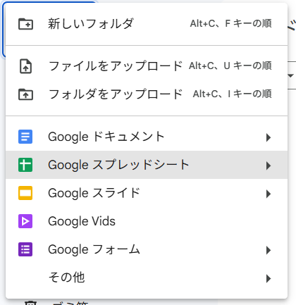 Googleを開いたときに、9つの点をクリックするとGoogledriveがあります。