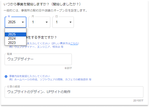 - 「職業」より少し具体的に 例)ホームページ制作・LP制作など
