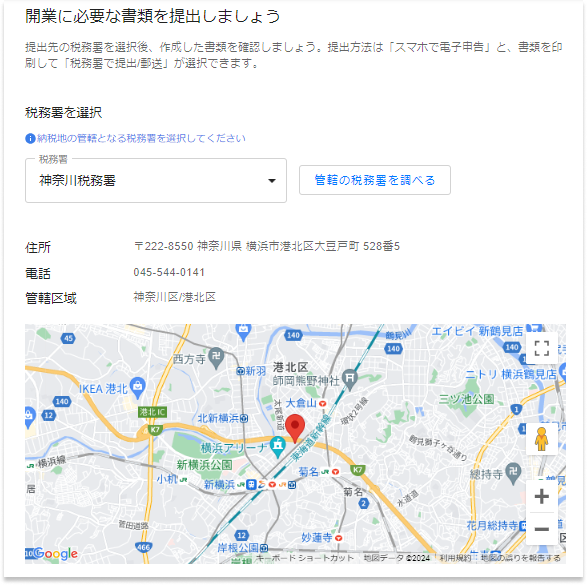 国税庁の「税務署の所在地などを知りたい方」ページにアクセスします。